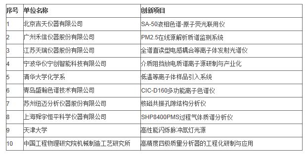 首屆“分析儀器創(chuàng)新獎”之“創(chuàng)新成果獎”入圍名單